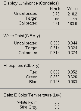 С этого теста мы немного видоизменили таблицу с результатами, добавив еще и график по каждому режиму.| яркость 90%, контраст 50% (заводские) | |||