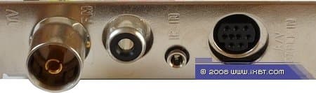 Коммутация внешних устройств организована при помощи переходника miniDIN 9-pin — S-Video + RCA (композитный видеовход) + mini-jack 3,5 мм female (аудиовход).