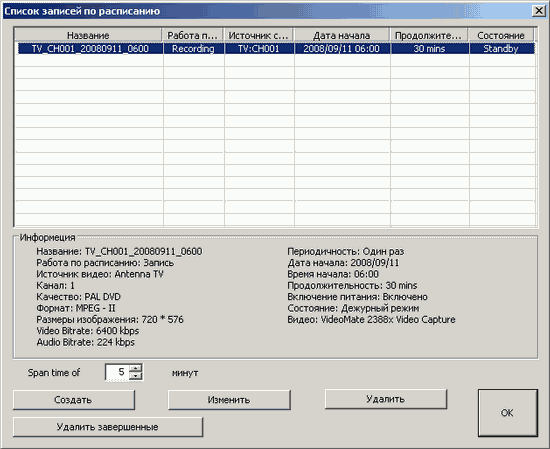 - Интеграция с планировщиком Windows Media Center