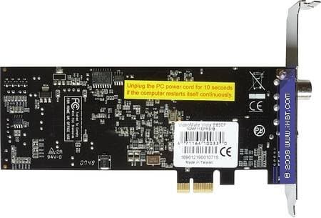 Экранирующий кожух скрывает полупроводниковый ВЧ-блок NXP TDA18271. Посадочное место под второй приёмник обусловлено общим дизайном платы с вышеупомянутой флагманской моделью VideoMate E900F, способной одновременно работать с двумя аналоговыми каналами.