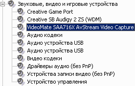 После установки в разделе Sound, video and game controllers диспетчера устройств, можно обнаружить VideoMate SAA716X AvStream Video Capture.