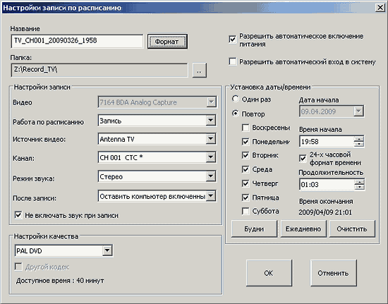 - интеграция с планировщиком Windows Media Center;
