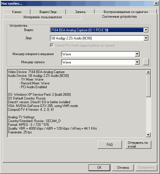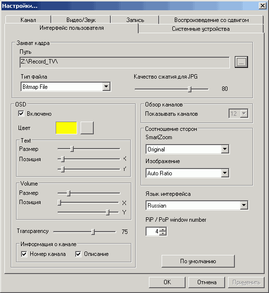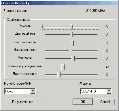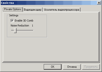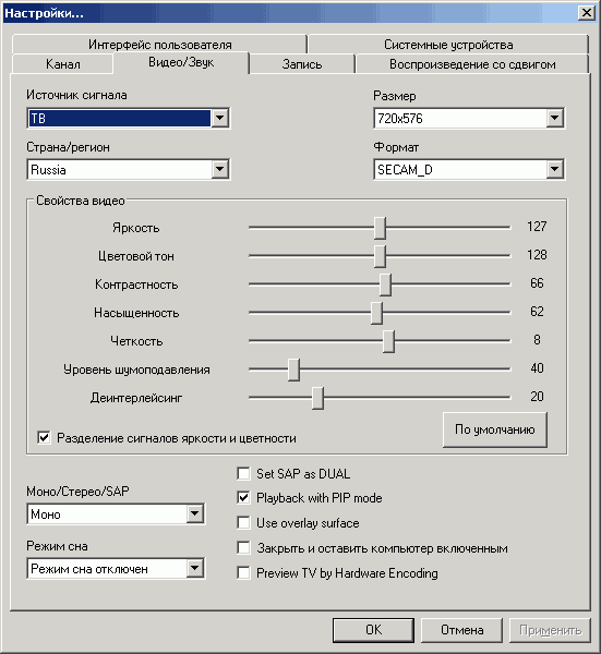 Непривычным является чекбокс Разделение сигналов яркости и цветности, задействующий аппаратное разделение этих параметров для композитного и аналогового телевизионного сигнала.