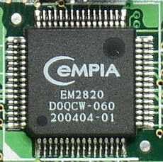 Работа с интерфейсом USB 2.0 осуществляется с помощью контроллера EM2820 от EMPIA Technology Inc.