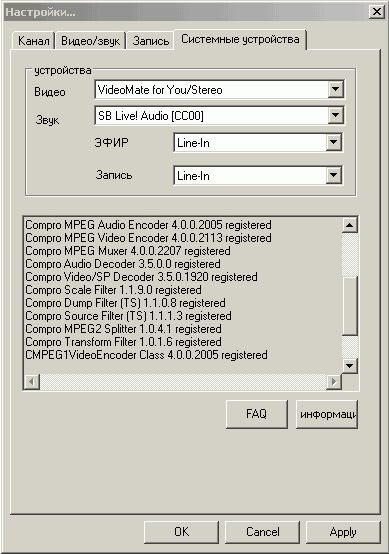 Сторонние приложения отнеслись к VideoMate For You/Stereo благосклонно, iuVCR и WinDVR 3.0 от InterVideo приняли его, как родного.