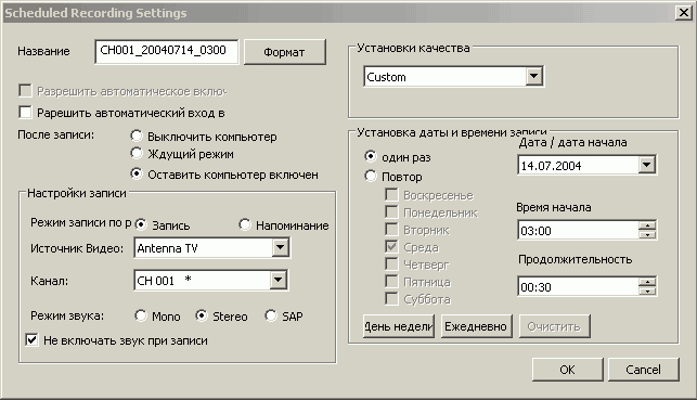 Напомним о возможности отключения компьютера/перевода в ждущий режим по окончании процесса записи по расписанию,