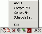 В трее появляются иконки планировщика (в новой версии ее наконец-то можно использовать и для запуска ComproFM) и программы дистанционного управления.