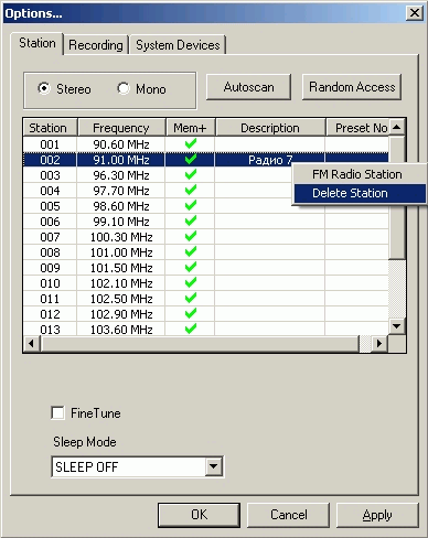 С включенной опцией Fine Tune программа, как мне показалось, пытается подстраивать частоты «на лету» в случае неуверенного приема. Станции, разумеется, можно редактировать, удалять