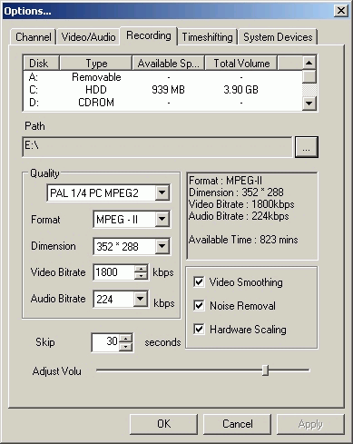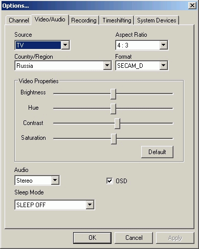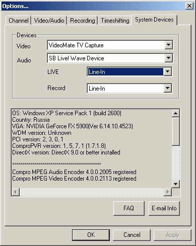 На последней закладке System Devices кроме изменения аудио- и видеоустройств присутствуют настройки аудиовхода при записи и воспроизведении (не забываем о возможности подключения тюнера к AUX-разъему звуковой карты)