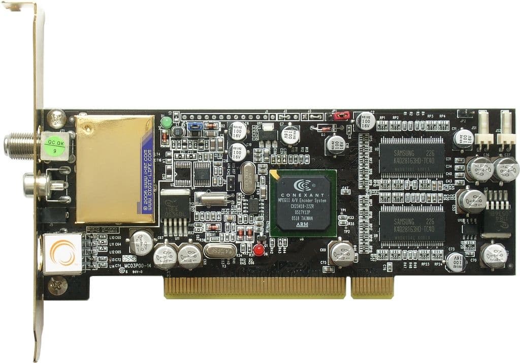2005 год в индустрии компьютерных TV-тюнеров по праву может считаться годом схемотехнических новинок. Разработчики комплектующих предоставили компаниям, производящим конечные устройства, не только эволюционные обновления, такие как классические ВЧ-блоки серии Mk5 от Philips Electronics, но и достойные альтернативы привычным компонентам. Речь идёт о полупроводниковых приёмниках, разработанных малоизвестной до этого калифорнийской компанией Xceive Inc., наконец-то, в полной мере продемонстрировавших возможности этой технологии. От ВЧ-блоков классической компоновки современные полупроводниковых селекторы отличаются универсальностью (поддерживаются все существующие стандарты), компактностью, меньшим энергопотреблением, а также одновременной поддержкой как аналогового, так и цифрового вещания. К тому же, меньшая себестоимость позволяет расширить функциональность тюнеров при несущественном увеличении розничной цены. Речь идёт о набирающей всё большую популярность поддержке аппаратного сжатия в MPEG1/2. И здесь на сцене появляется ещё одна относительно новая разработка — микросхема CX23418 от Conexant Systems, Inc., сочетающая АЦП и аппаратный MPEG1/2-кодировщик. Справедливости ради уточним, что в настоящее время CX23418 не является единственным одночиповым решением. Практически одновременно с Conexant подобный подход был использован ATI Technologies Inc. при разработке THEATER 550 PRO. К сожалению, отсутствие поддержки SECAM вывело THEATER 550 PRO из сферы интересов российских потребителей.