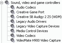 После установки получаем устройство VideoMate H900 Video Capture в разделе Sound, video and game controllers.
