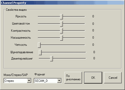Расширился список индивидуальных настроек для каждого канала. К яркости, цветности, контрастности, насыщенности, чёткости и стандарту цветности добавились шумоподавление и деинтерлейсинг. С одной стороны, индивидуальная настройка последнего параметра пока ещё нигде не встречалась, с другой — разницу между положениями ползунка, отличающимися от полного отключения заметить достаточно трудно.
