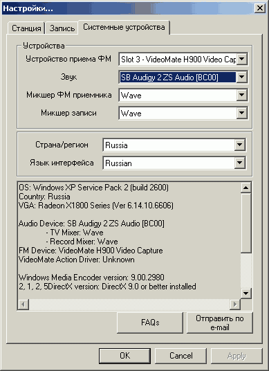 Вполне заслуживающий эпитета «идеальный» поиск TV-каналов в FM-режиме дал сбой. После сканирования в списке оказался почти весь диапазон (!) с минимальными интервалами между частотами. Впрочем, на работе тюнера это не сказалось, после редактирования списка вручную H900 продемонстрировал отличное качество приёма. Желающие сэкономить время, потраченное на настройку, при последующих обновлениях программы могут воспользоваться файлом fmchlist.bin, находящимся в Program FilesVideoMateVideoMateCompro FM 2 c (для Compro PVR 2 это файлы channel.bin и chnprop.bin соответственно).