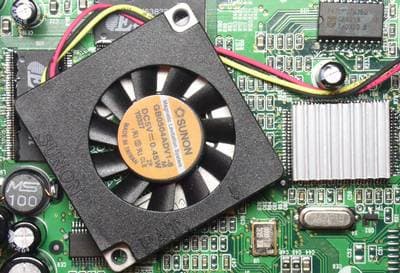 Я уже отмечал склонность инженеров Compro Technology к оригинальному подходу даже в мелочах. Не секрет, что многие видеокарты с куда большим тепловыделением зачастую имеют вентиляторы на подшипниках скольжения. Здесь же мы видим Magnetic Levitation Fan от Sunonwealth Electric Machine Industry Co., Ltd., с принципом работы которого можно ознакомиться на сайте производителя. Так что, о сроках износа подшипников можно не беспокоиться. Мало того, что вентилятор конструктивно имеет низкий уровень шума, он еще и снабжен термодатчиком, при необходимости отключающим систему охлаждения.