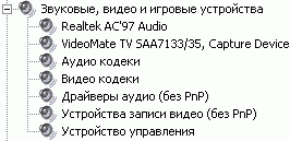 После установки получаем устройство VideoMate TV SAA 7133/35, Capture Device в разделе Sound, video and game controllers.