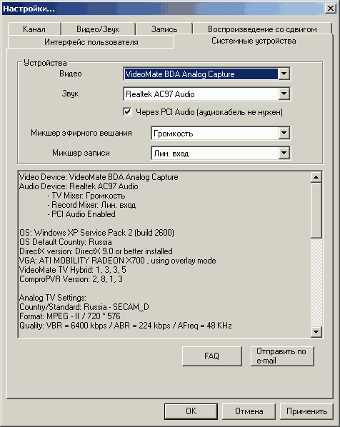Схожесть интерфейсов PCMCIA и PCI позволила оставить без изменений чекбокс Через PCI Audio. Напомним, что возможность использования дополнительного звукового кабеля у подобных устройств встречается крайне редко.