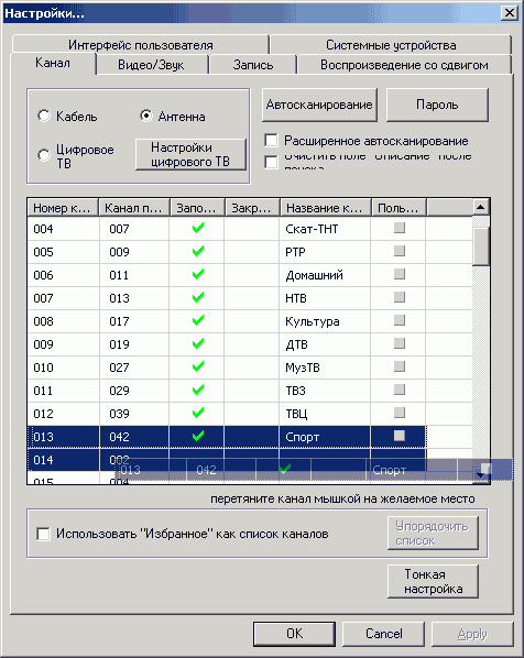 - Настройка расположения каналов в списке