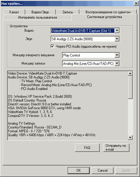 - Поддержка 32- и 64-разрядных версий Windows XP/MCE 2005/Vista (мультимедийные интерфейсы операционных систем поддерживают только цифровой режим)
