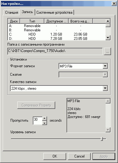 Compro VideoMate T750 обеспечивает хорошее качество звука в FM-режиме (скачать тестовый фрагмент, 473 КБ, MP3, 192 Кбит/с, 48 кГц).