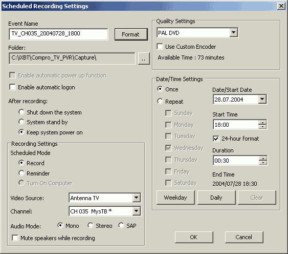 Напомним об уникальной возможности автоматизации входа в систему при наличии нескольких пользователей и о функции отключения/перевода в режим ожидания компьютера после окончания записи.