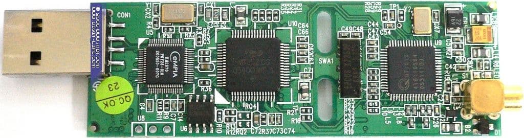 За приём сигнала отвечает полупроводниковый ВЧ-блок QT1010 от Quantek. Интересно, что данный приёмник способен работать и с аналоговым телевидением, так что будем ждать появления соответствующих устройств, оснащённых этим селектором.