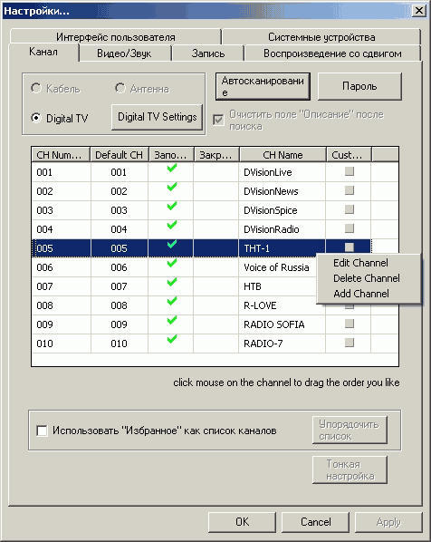 Индивидуальная настройка яркости, контраста, цветности, оттенка и чёткости для каждого канала практически не встречается в программах для работы с DVB-T тюнерами.