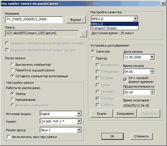 - Планировщик записи с включением компьютера из режимов Standby (S3) и Hibernate (S4)