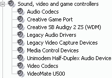 После установки в разделе Sound, video and game controllers появляется устройство VideoMate U500,
