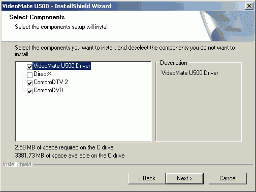Установочное меню, традиционно реализованное средствами InstallShield, представляет собой выбор устанавливаемых компонентов.