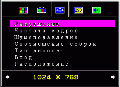 Настройки дисплея позволяют установить разрешение (полный список приведён выше) и частоту кадров (напомним, что 75 Гц не поддерживается в разрешении 1680x1050). Уровень достаточно эффективного аппаратного шумопонижения в диапазоне от 0 до 8, как и параметры изображения, применяется ко всем каналам одновременно.