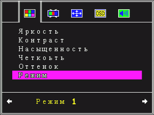 - Режимы настройки видеопараметров (яркости, контраста, насыщенности, оттенка и чёткости) OptiColor