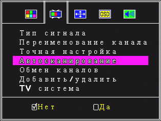 Второй раздел отвечает за настройку и сортировку каналов. Тип сигнала позволяет выбрать антенный или кабельный диапазон. Критиковать за разделение не будем, так как после запуска автосканирования можно не ограничиваться выбранным диапазоном, а запустить поиск по объединённому списку.