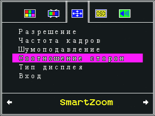 - SmartZoom — увеличение изображения, избавляющее от бордюров в случае трансляции в формате letter box
