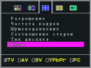 Экранное меню начинается с раздела видеонастроек. Набор подлежащих регулировке параметров не выходит за пределы стандартного, можно изменить яркость, контраст, насыщенность, чёткость (опечатка в русском названии этого параметра, похоже, досталась по наследству от V550) и оттенок. Тюнер не имеет аппаратной поддержки разделения яркостной и цветностной составляющих сигнала, место этой настройки занял выбор предустановленных режимов. Кроме вариантов Игры и Кино (предназначен для использования с DVD-проигрывателем или видеомагнитофоном, при выборе включается автоматическая коррекция последовательности 3:2 (3:2 pull-down) для NTSC) доступны 5 (пять!) пользовательских профилей, что является абсолютным рекордом среди всех автономных тюнеров, попавших в нашу тестовую лабораторию.