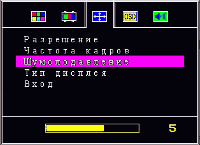В настройках дисплея выбирается разрешение (полный список приведён выше) и частота кадров (60 и 75 Гц). Выставленное значение почему-то попавшего сюда шумопонижения, как и параметры изображения, применяется ко всем каналам одновременно. Завершают список доступных в этом разделе настроек выбор типа дисплея (LCD, CRT, плазменная панель) и видеовхода.