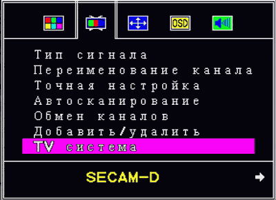 Хочется обратить внимание на не совсем точный перевод пункта TV Система. В английском варианте он носит название Channel Video System. Нетрудно догадаться, что стандарт цветности настраивается индивидуально для каждого канала. Не совсем понятно, почему столь ценная для российских и украинских пользователей возможность не описана в спецификациях.
