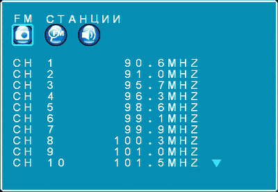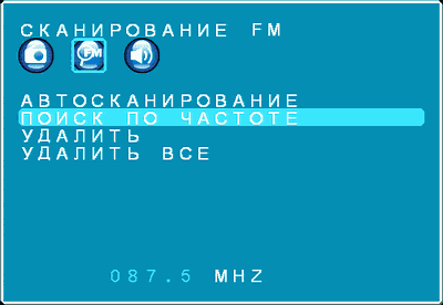 Следующий раздел отвечает за автоматический поиск, ввод определённой частоты и удаление отдельной радиостанции, а также за полную очистку списка.