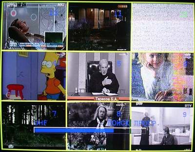 Многоканальный предварительный просмотр с матрицей 3х3 вызывается кнопкой PREVIEW на пульте. Звук в этом режиме отсутствует. Кнопка FREEZE на пульте ДУ позволяет зафиксировать кадр.