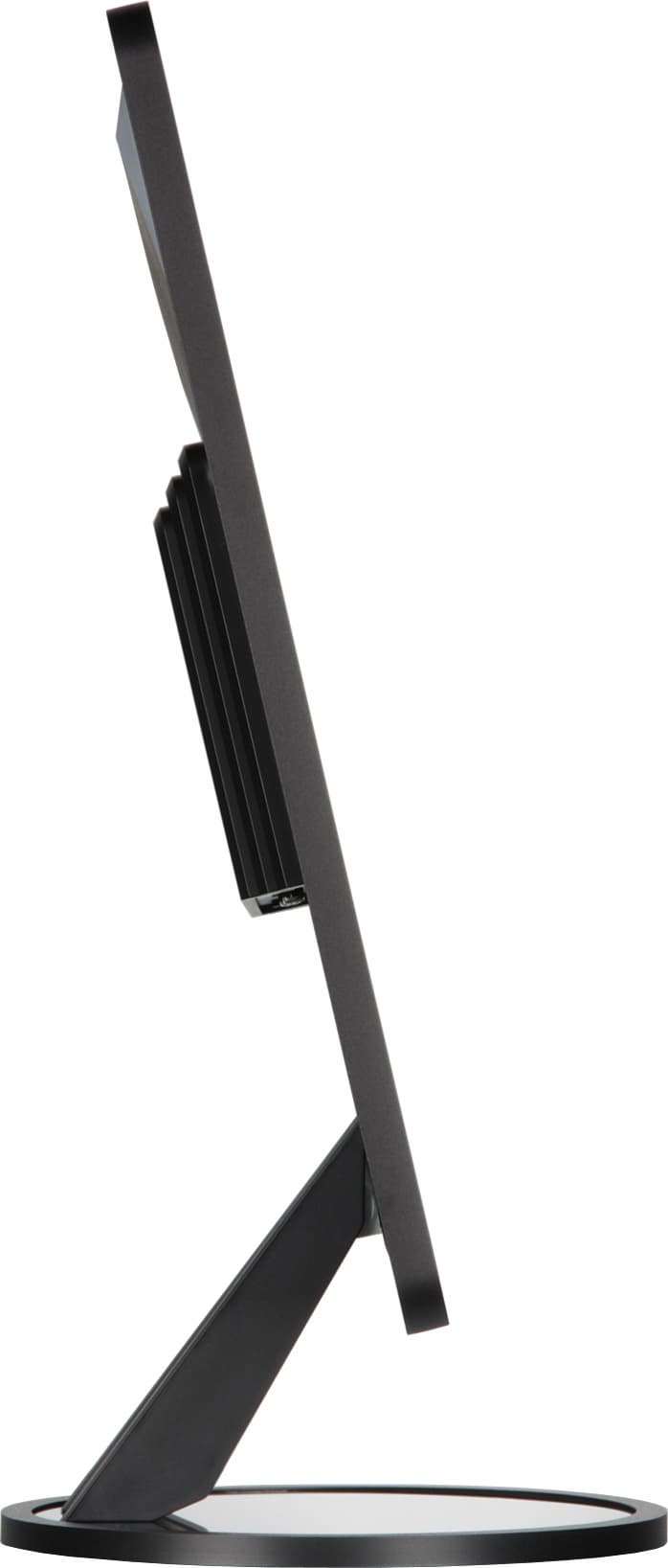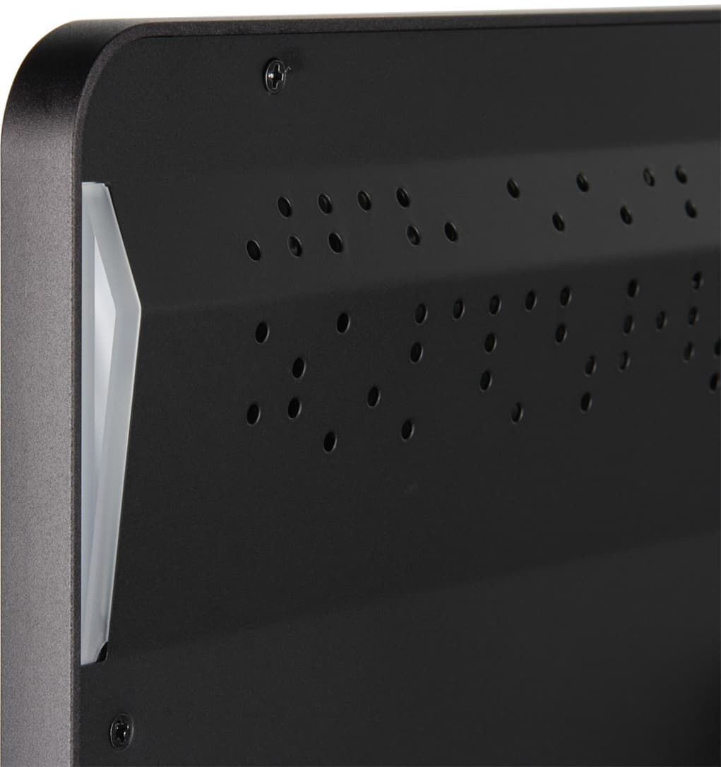 Правее и ниже от этого окошечка — крохотная дырочка, сквозь которую просвечивает индикатор состояния. Кнопки не подсвечиваются, что несколько осложняет работу с ними в темноте. Блок экрана в основном плоский и тонкий — толщина чуть больше 13 мм. Рамка по периметру экрана изготовлена из стали, задняя панель — из жести, и все это покрыто матовой стойкой черной краской.