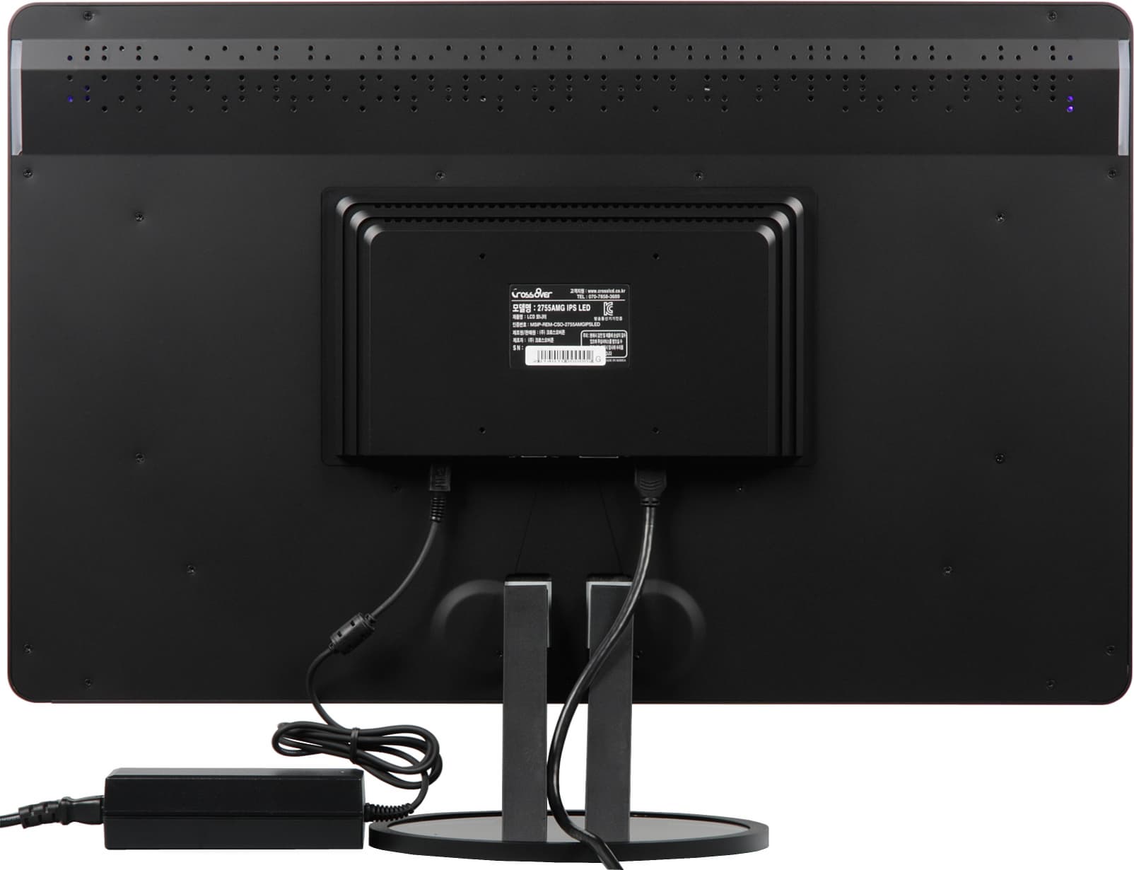 При необходимости подставку можно отсоединить и закрепить блок экрана на VESA-совместимом кронштейне (площадка 100 на 100 мм). Монитор оснащен внешним блоком питания. Это не очень удобно при эксплуатации, но при выходе блока питания из строя (а это одна из самых распространенных причин поломки ЖК-мониторов) его проще заменить новым или отремонтировать. При работе на максимальной яркости блок питания заметно греется, тогда как блок экрана монитора остается едва теплым. Вентиляционные решетки на мониторе — это упомянутые дырочки в верхней части задней панели и решетка на фигурном выступе сзади. Поставляется монитор в скромно оформленной коробке с прорезными ручками в торцах. Одному ее переносить можно, но не очень удобно.