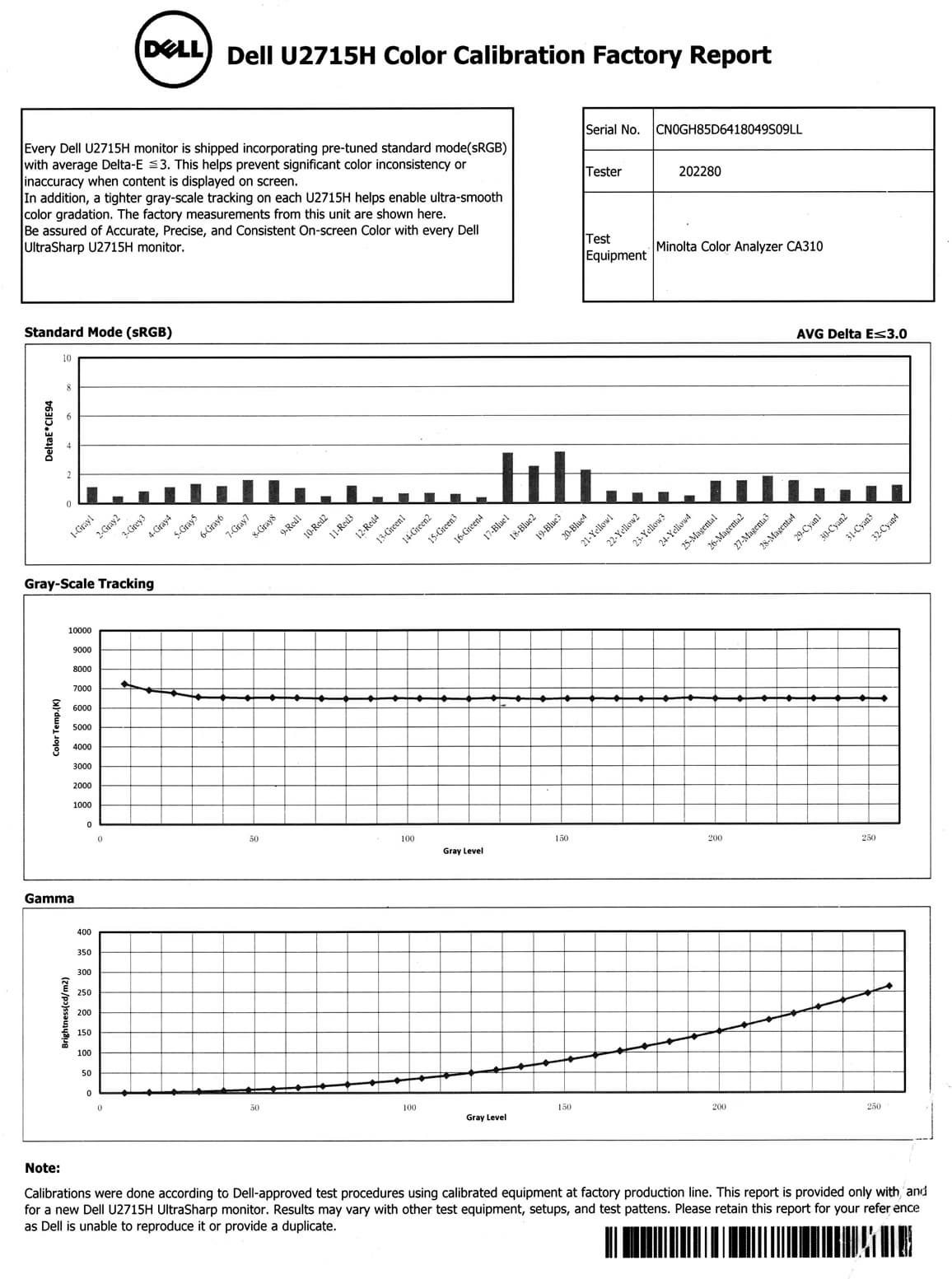 Производитель заявляет, что монитор проходит заводскую калибровку, и в доказательство прилагает соответствующий отчет: