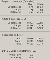 Калибруем датчик Pantone, проводим замеры цветопередачи при следующих настройках яркости и контраста:![]() данные для заводских установок | ![]() |