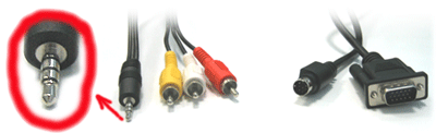 - комбинированный аудио/видео шнур с разьемами RCA с одной стороны и четырехконтактным mini-jack на другом: