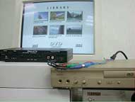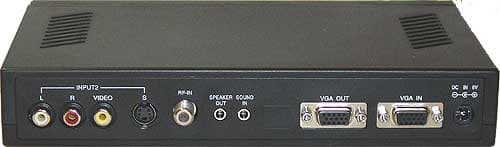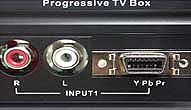 Но это устройство имеет и другое не менее полезное применение — оно способно принимать видеосигнал с внешних низкочастотных аналоговых источников. На задней панели есть входы Composite и S-Video, а также стереопара RCA для звукового сопровождения изображения. Включается вход либо на передней панели устройства, либо с пульта. Индикация его активности осуществляется светодиодом на передней панели и на экранном меню. Занятно, что нигде нет возможности переключения между входами Composite и S-Video. Опытным путем удалось выяснить, что вход S-Video обладает приоритетом относительно Composite — он выбирается автоматически, если на него подан видеосигнал, в противном случае устанавливается вход Composite.
