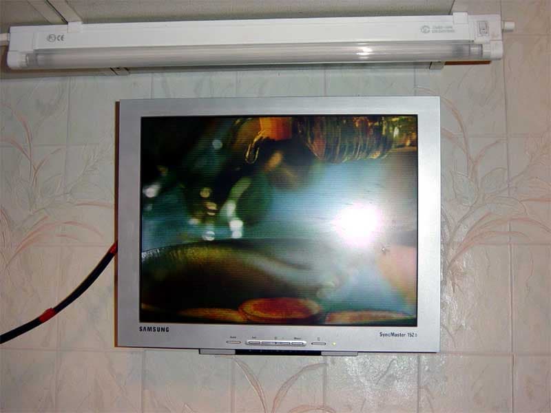 Хочется на кухне иметь телевизор, да места нет? Покупаем самую дешевую LCD панель (здесь особую ценность преставляют панели, имеющие малую глубину, настенное крепление и встроенные динамики), цепляем к ней тюнер и вешаем на стену. Вот и готов модный современный телевизор, который не стыдно повесить как дома, так и в солидном офисе (например панель Samsung 152S у меня дома удачно вписалась над кухонным столом). Глубина некоторых панелей не превышает 2—3 см, при цене менее $300. А общая стоимость такого «телевизора-конструктора» не превышает $400. Для сравнения: стоимость брендовых настенных LCD телевизоров от Sony или Panasonic значительно больше $1000.