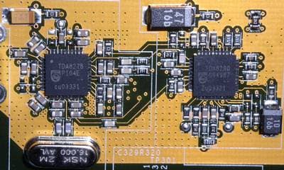 На привычном месте расположены сам тюнер TDA8275 и мультистандартный демодулятор TDA8290 от Philips Semiconductor.