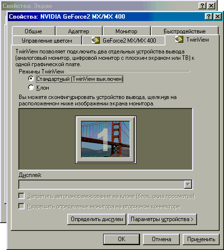 Особенности технологии TwinView видеокарт GeForce2MX