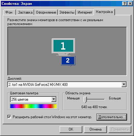 Режим »Extend» включается прямо на первой закладке »Свойства: Экран»