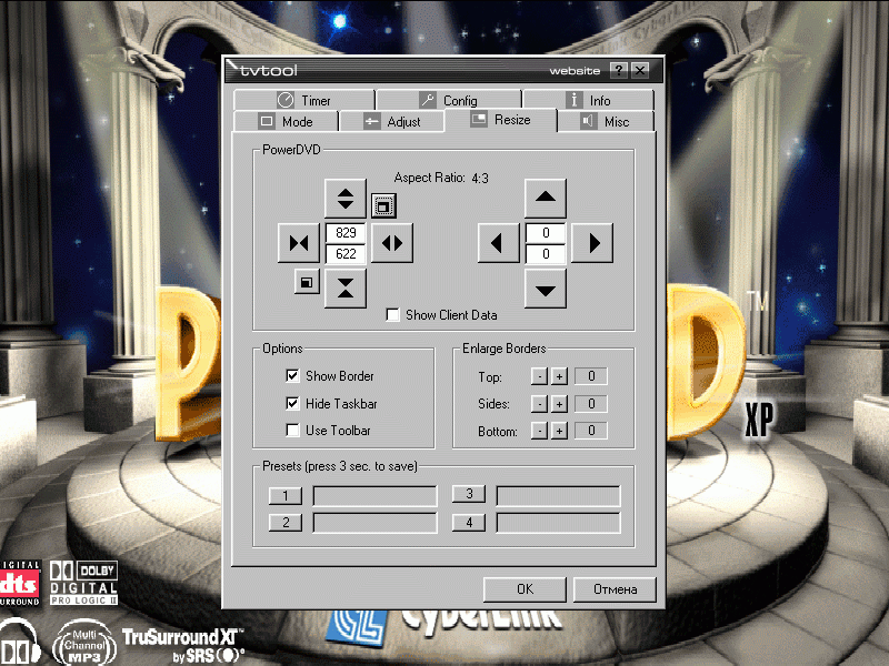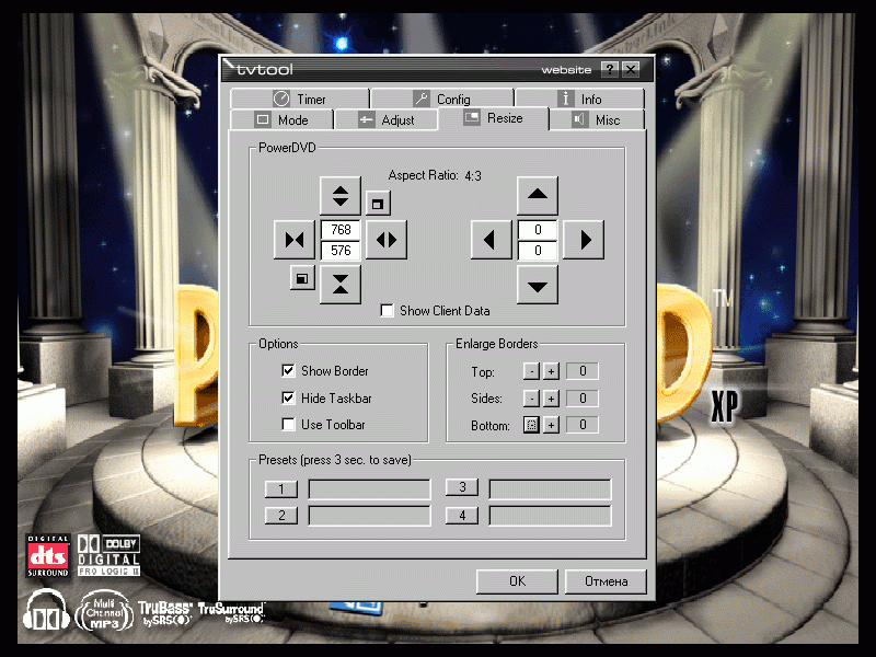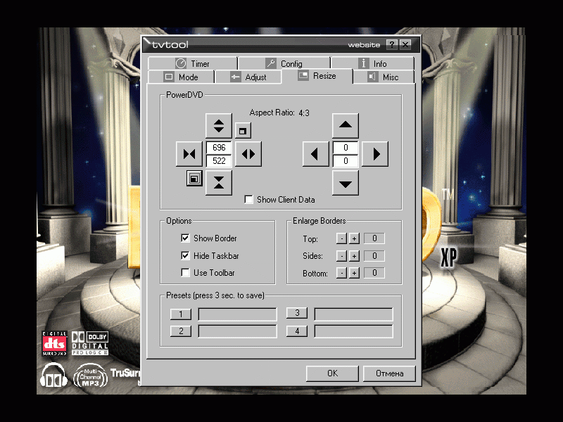 - и, наконец, в поле «Picture Size» настройки Overscan, позволяющие в режиме Fullscreen получать изображение без бордюров.