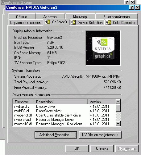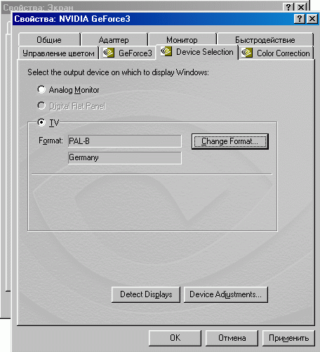 Подключив, наконец, телевизор, счастливый обладатель GF 2 или GF 3, естественно, первым делом пытается вывести изображение с помощью стандартных средств драйвера: